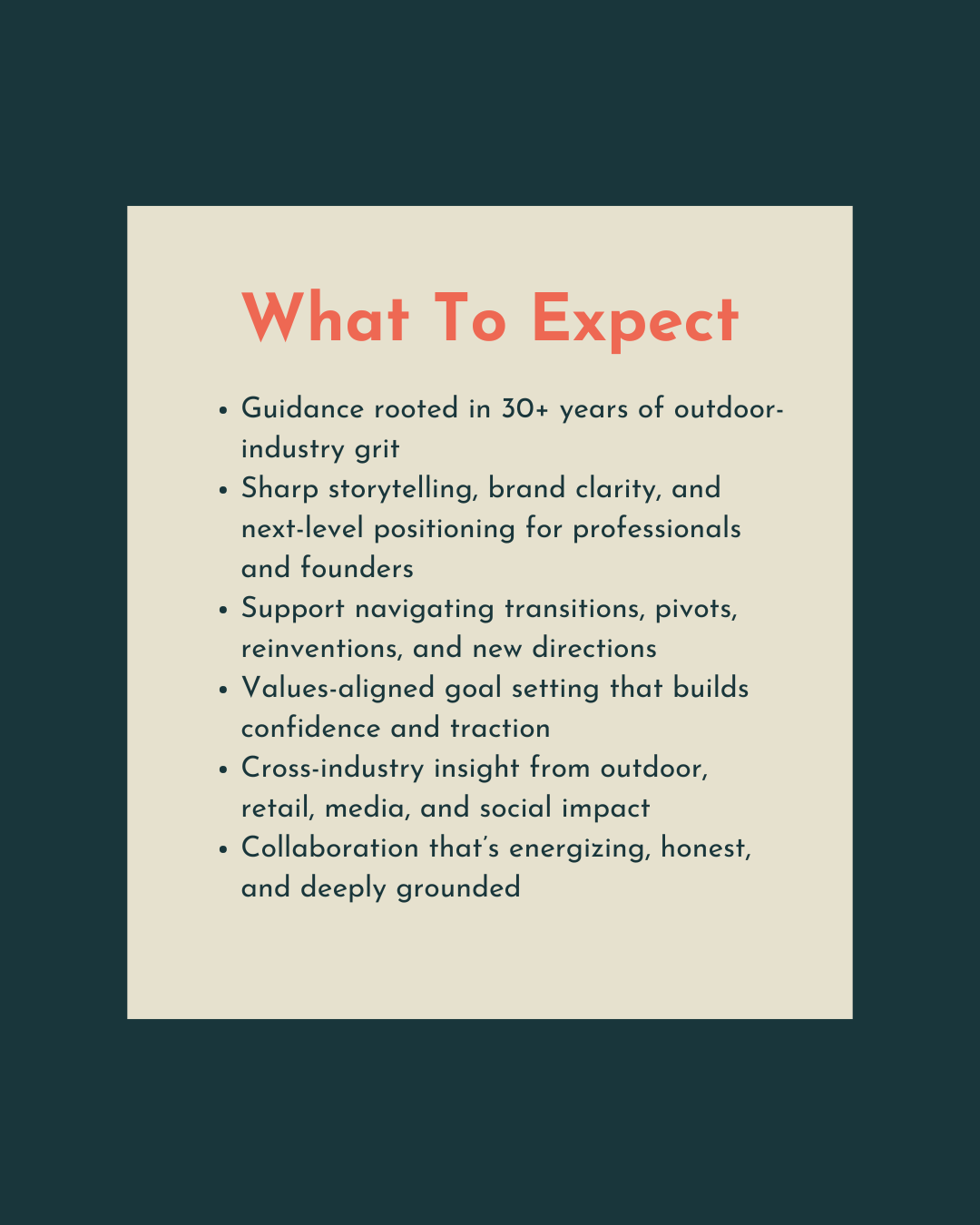 Industry Areas of Expertise: Outdoor & Snow Sports Culture • Brand Storytelling • Marketing & Communications • Media & Publishing • Creative Direction • Leadership & People Development • Social Impact • Founder & Career Coaching